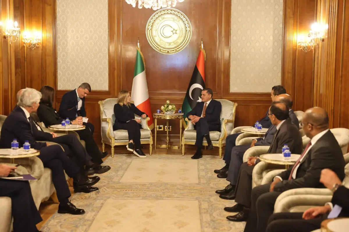 استقبل رئيس حكومة الوحدة الوطنية عبدالحميد الدبيبة، في ديوان رئاسة الوزراء بطرابلس، رئيسة الوزراء الإيطالية جورجيا ميلوني والوفد المرافق لها.