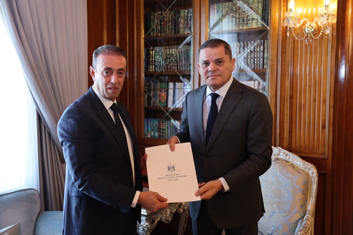استلم رئيس حكومة الوحدة الوطنية عبدالحميد الدبيبة، اليوم الثلاثاء، رسالة خطية من نظيره الفلسطيني محمد مصطفى، نقلها القائم بأعمال السفارة الفلسطينية في ليبيا محمد رحال.