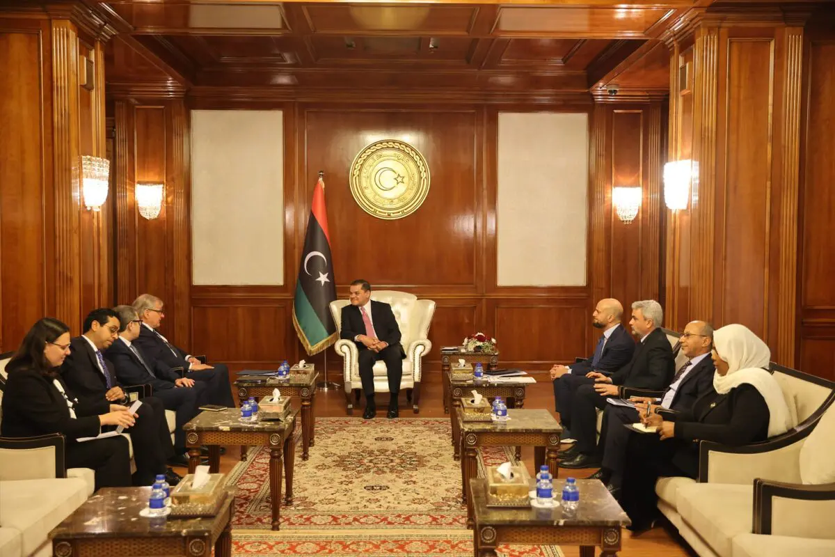 استقبل رئيس حكومة الوحدة الوطنية عبد الحميد الدبيبة، اليوم الخميس، بديوان رئاسة الوزراء في طرابلس، المبعوث الأمريكي الخاص إلى ليبيا السفير ريتشارد نولاند.