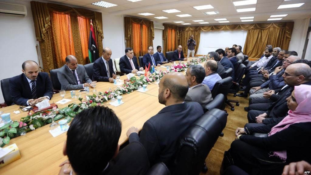 ويواصل المجلس الرئاسي لحكومة الوفاق الوطني لقاءاته مع المسؤولين في المؤسسات السيادية والبلديات والمشايخ والأعيان التي بدأها منذ وصوله إلى العاصمة طرابلس في نهاية شهر مارس الماضي، منتظرًا قرار مجلس النواب خلال جلسة منح الثقة لحكومة الوفاق الوطني التي لم تحدد بعد.