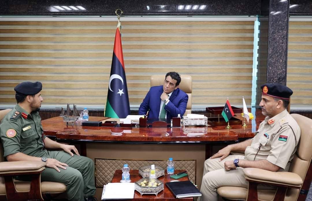 التقى رئيس المجلس الرئاسي محمد المنفي بصفته القائد الأعلى للجيش، الوم الأحد، آمر المنطقة العسكرية الساحل الغربي، لواء صلاح الدين النمروش، وآمر اللواء 444 قتال عقيد محمود حمزة.