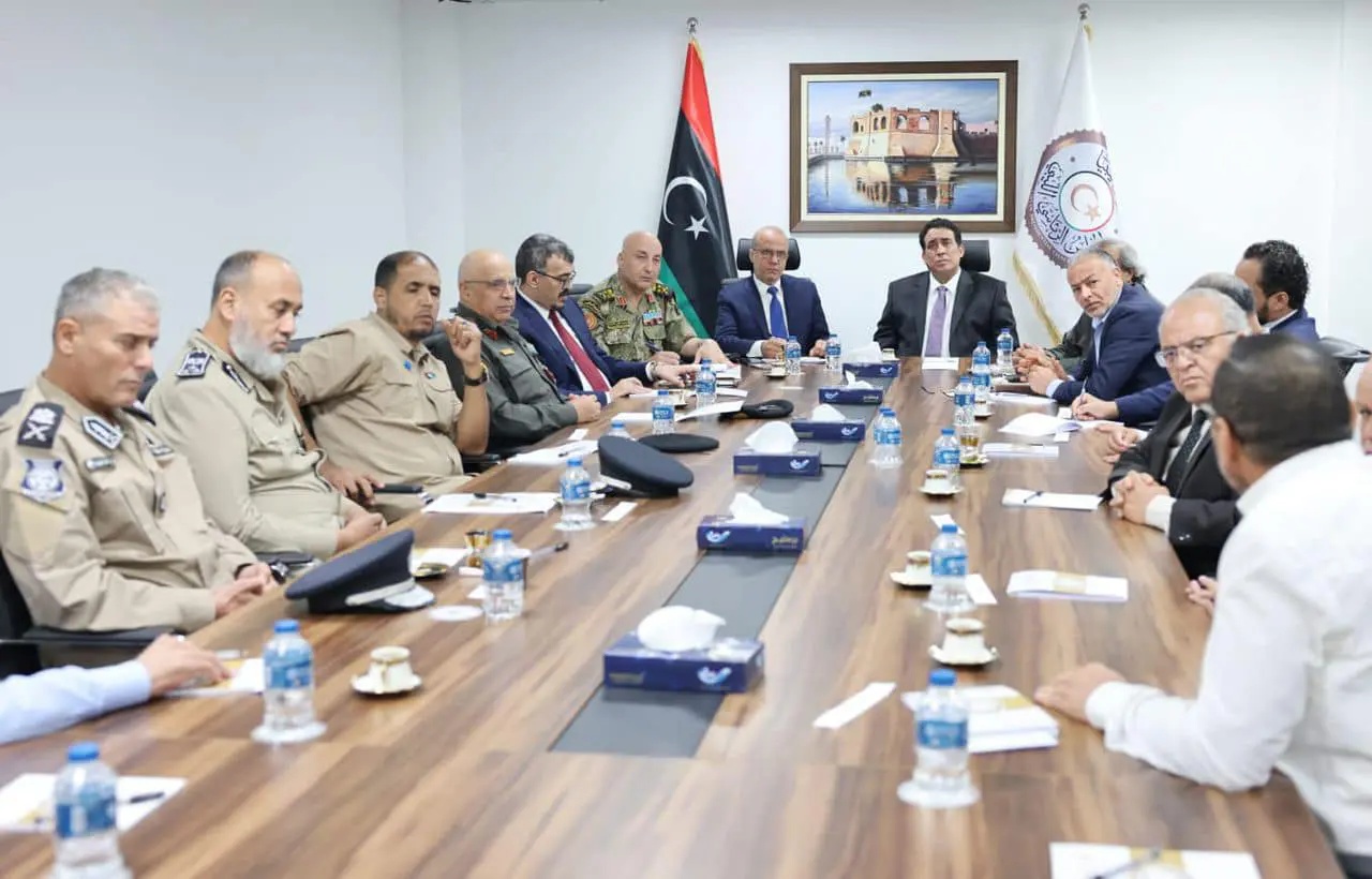 عقد رئيس المجلس الرئاسي محمد المنفي، والنائب بالمجلس عبدالله اللافي، اليوم الاثنين، اجتماعاً أمنياً موسعاً بشأن مقتل عدد من المهاجرين غير الشرعيين بصبراتة.