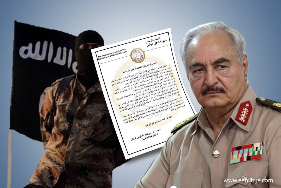 هذا وذكّر المجلس المجتمع الدولي بأنه في حال استمر في صمته تجاه ما يقوم به حفتر، فأنه يُشارك بصمته في تمدد هذه الجماعات مجددًا داخل ليبيا، بعد أن تمكنت قوات حكومة الوفاق من القضاء عليها في سرت، وما تبع ذلك من جهود كبيرة لأجهزة مكافحة الإرهاب في اقتلاع معظم خلاياه النائمة في عدة مناطق في البلاد.