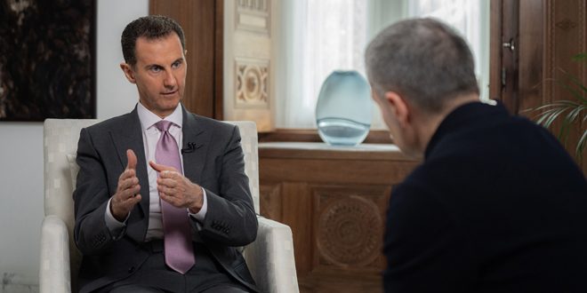 وقال الرئيس الأسد: الغرب يريد أن يكون هو فقط قوي وغير مسموح للروسي أن يكون قوياً منذ أيام بطرس الأكبر.