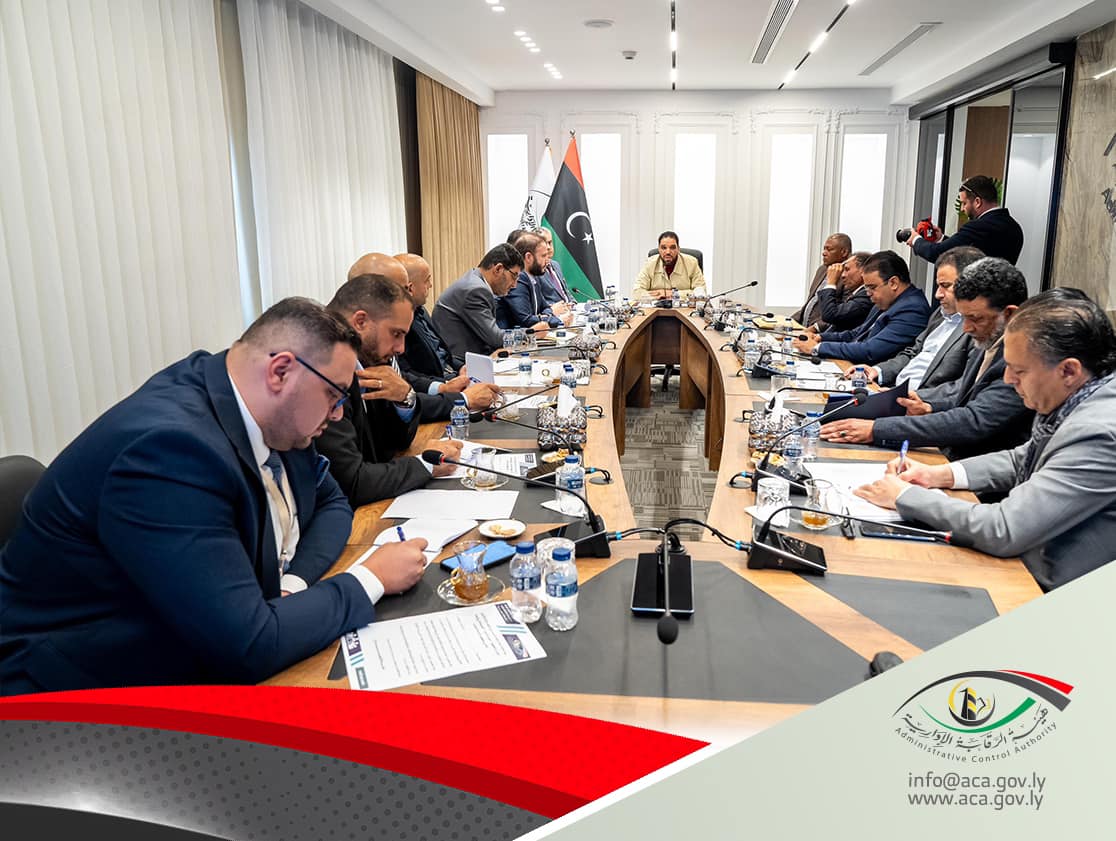 عقد رئيس هيئة الرقابة الإداري “عبد الله قادربوه”، اجتماعا في مقر ديوان الهيئة، برفقة رئيس اللجنة المالية بالمجلس النواب “عمر تنتوش” مع كل من ، “وزير المالية خالد المبروك، ووزير التعليم العالي والبحث العلمي بحكومة الوحدة الوطنية عمران القيب، ووزير العمل والتأهيل علي العابد، وبعض مديري الإدارات العامة والمكاتب بالهيئة والوزرات”.