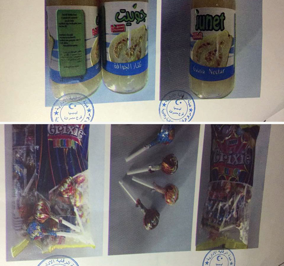 كما رفض المركز سلعة حلوى مصاص بالعلامة التجارية Treff، ذات المنشأ الهندي لاحتوائها على لون صناعي E155 المحظور استخدامه.