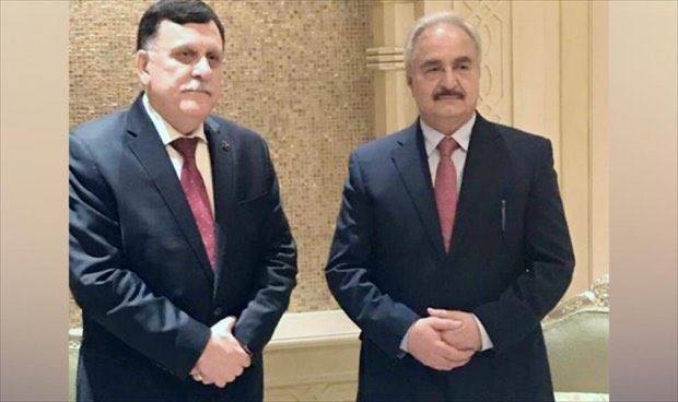 عقب اللقاء الذي جمع خليفة حفتر ورئيس المجلس الرئاسي لحكومة الوفاق فايز السراج، صدر بيان صحفي مشترك استعرض مجمل الأوضاع الراهنة في الساحة الليبية والظروف المعيشية الصعبة التي يواجهها المواطن على الصعد كافة.