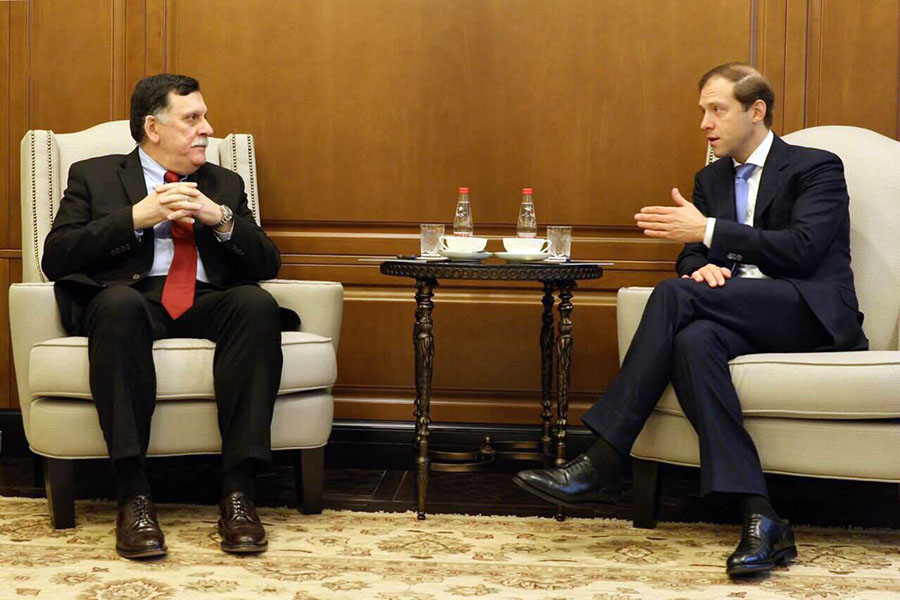 التقى رئيس المجلس الرئاسي لحكومة الوفاق فائز السراج، وزير الصناعة والتجارة الروسي “دنيس منتوروڤ” اليوم الجمعة.
