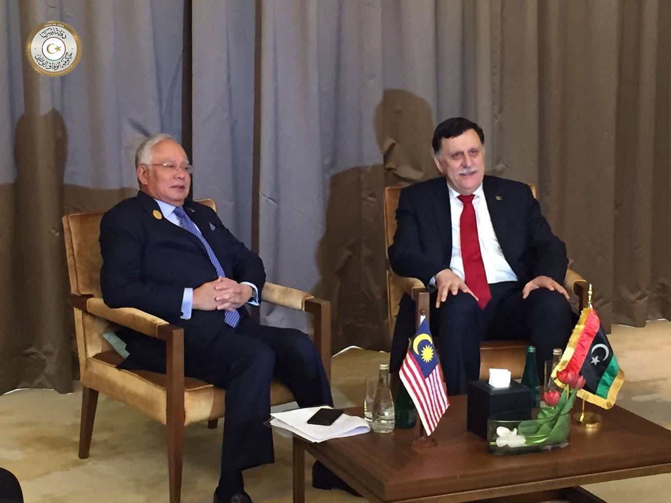 السراج أوضح في هذا اللقاء جهود المجلس الرئاسي ،لتوسيع قاعدة الوفاق وتحقيق مصالحة وطنية بين الفرقاء السياسيين،مبدياً تطلعه وحكومة الوفاق الوطني لإرساء تعاون استراتيجي مع ماليزيا.