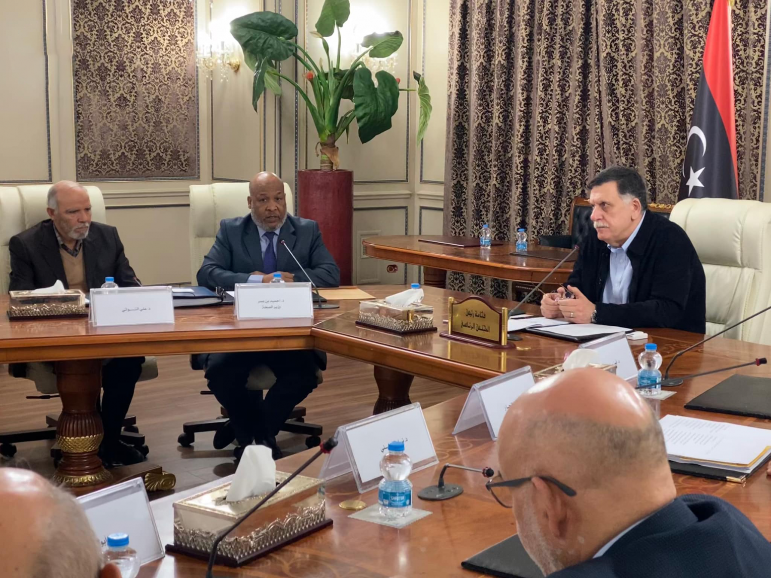 عقد رئيس المجلس الرئاسي لحكومة الوفاق الوطني فائز السراج، اجتماعاً الثلاثاء، مع وزير الصحة رئيس اللجنة العليا لمجابهة جائحة كورونا الدكتور أحميد بن عمر، بحضور النائب د. أيمن سيف النصر رئيس لجنة البيئة والصحة بمجلس النواب المنعقد في طرابلس، و15 طبيباً من كبار الأطباء والأخصائيين.