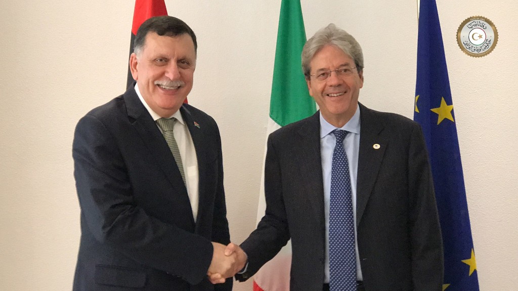 وجدد رئيس الوزراء الايطالي دعم بلاده لحكومة الوفاق الوطني مؤكدا على عمق العلاقات التاريخية التي تربط بين البلدين، مشيداً السيد جينتيلوني بما يبذله السيد الرئيس من جهود من اجل تحقيق الاستقرار في ليبيا . من جانبه أكد السيد الرئيس على العلاقات المميزة التي تربط البلدين الصديقين ، منوها بما تبذله ايطاليا من جهود لتتخطي ليبيا الأزمة الراهنة