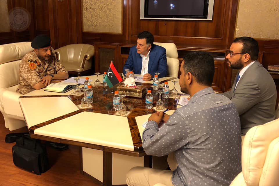 التقى رئيس المجلس الرئاسي القائد الأعلى للجيش الليبي فائز السراج أمس الأحد مع كل من اللواء محمد الحداد آمر المنطقة الوسطى، ووكيل وزارة الصحة د. محمد الهيثم، ومدير مركز الطب الميداني والدعم السيد طارق الهمشري.