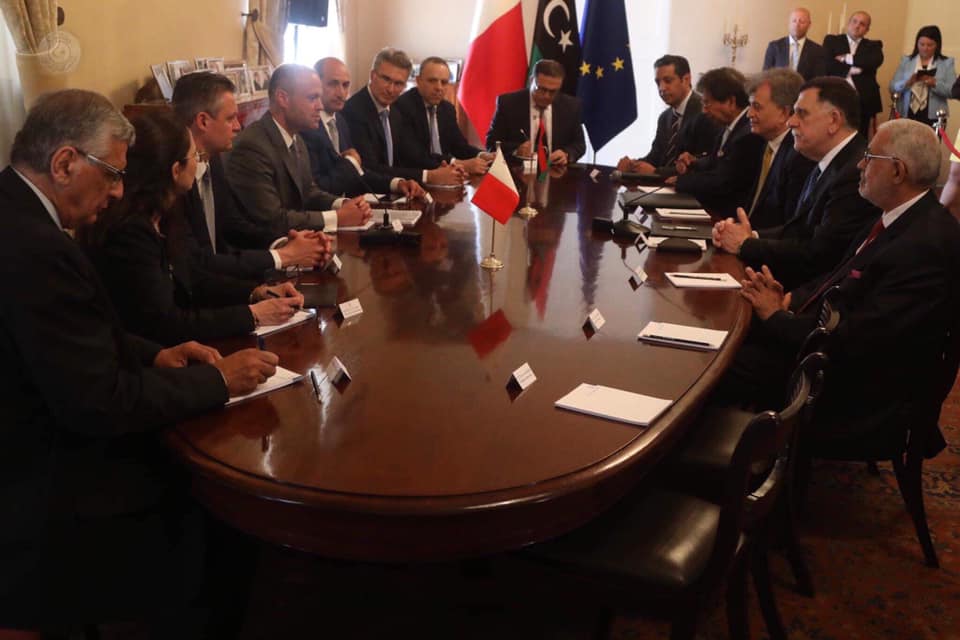 أجرى رئيس المجلس الرئاسي لحكومة الوفاق الوطني فائز السراج، محادثات الاثنين، في العاصمة المالطية فاليتا مع رئيس وزراء مالطا جوزيف موسكات، تناولت مستجدات الوضع في ليبيا في ظل الاعتداء الذي تتعرض له العاصمة طرابلس منذ 4 أبريل الماضي، بالإضافة إلى بحث عدد من ملفات التعاون المشترك.