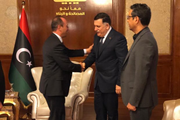 استقبل رئيس المجلس الرئاسي لحكومة الوفاق الوطني “فائز السراج” صباح أمس الخميس بمقر المجلس بمدينة طرابلس القائم بالأعمال الفلسطينية “محمد رحالا”.