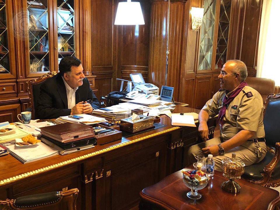 استقبل رئيس المجلس الرئاسي لحكومة الوفاق الوطني فائز السراج اليوم الأربعاء بمقر المجلس بالعاصمة طرابلس قائد عام كشاف ليبيا فرج بن سليم.