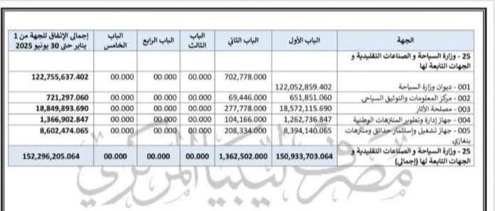 وأرفقت الوزارة جدولًا صادرًا عن مصرف ليبيا المركزي، يتضمن تفصيلًا شاملاً لقيمة المصروفات خلال الفترة المشار إليها، في خطوة تهدف إلى تعزيز الشفافية وتوضيح الحقائق أمام الرأي العام، خاصة في ظل تداول معلومات غير دقيقة عبر بعض المنصات.