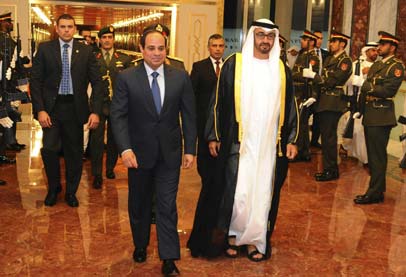 ودعا السيسي، رجال الأعمال المصريين العاملين في دولة الإمارات إلى الاستثمار وتنفيذ مشاريع تطويرية في بلدهم مصر.