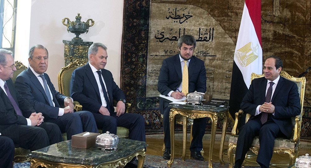 أكد الرئيس المصري عبد الفتاح السيسي، اليوم الإثنين، لدى استقباله وزيري خارجية ودفاع روسيا سيرغي لافروف وسيرغي شويغو، حرص مصر على ترسيخ الشراكة مع روسيا في المجالات الاقتصادية والتجارية والصناعية.