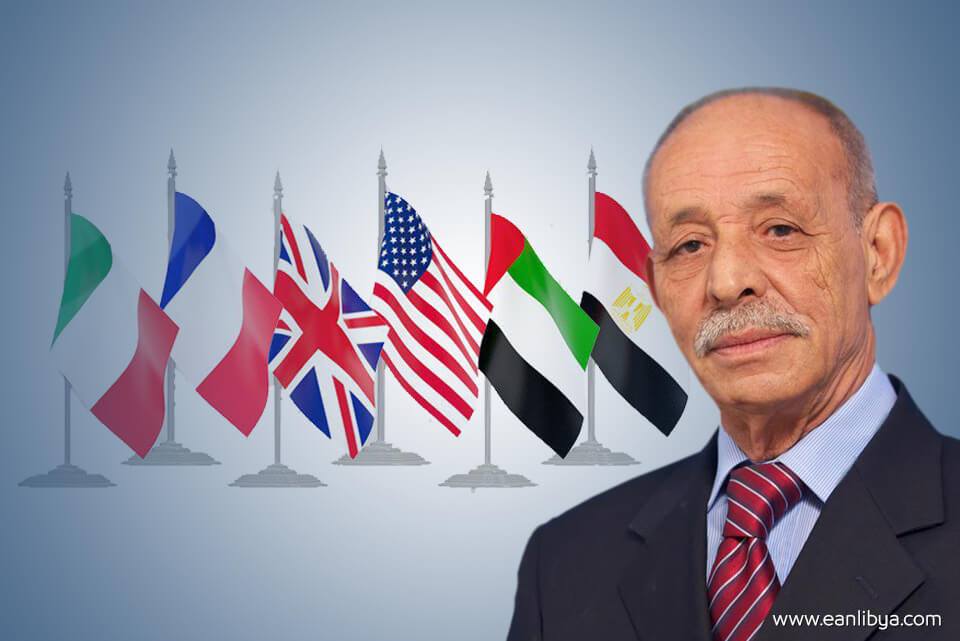 وأشار الشاطر إلى وجود تحرك محموم من دول ستة هي (فرنسا- الإمارات- مصر- بريطانيا- إيطاليا والولايات المتحدة الأمريكية) نصبت نفسها قيّمًا على المسألة الليبية وتكـثّف اجتماعاتها بدعوى البحث عن حل سياسي لما يحدث في المنطقة الغربية.