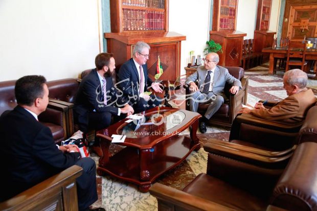 التقى محافظ مصرف ليبيا المركزي الصديق عمر الكبير، بمكتبه يوم أمس الاثنين مع سفير دولة النمسا بليبيا رونالد شتورم، والمستشار التجاري بالسفارة مارتن ويلر .