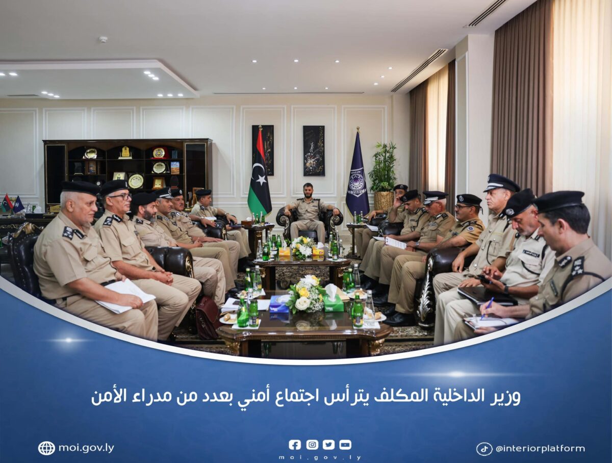 هذا وشارك في الاجتماع مدراء أمن “طرابلس، الجفارة، جنزور، تاجوراء، النواحي الأربع، شرق الجبل، وسط الجبل، شمال الجبل، غرب الجبل”، ومدير مكتب وزير الداخلية ومدير مركز المعلومات والتوثيق ومدير إدارة الشؤون القانونية.