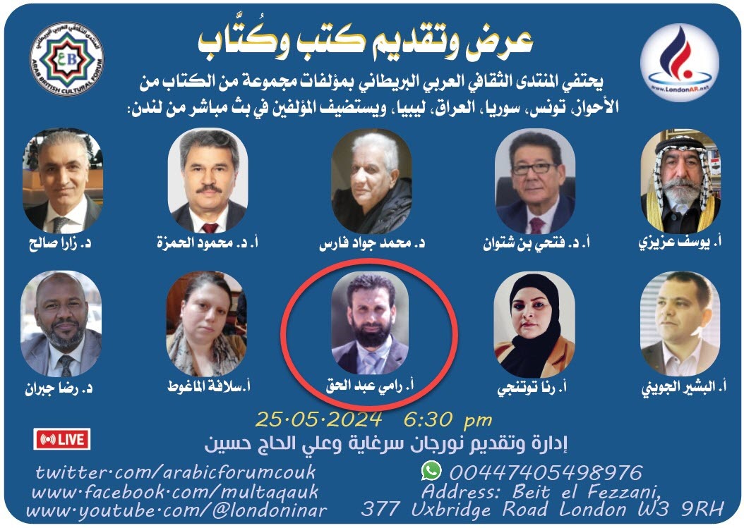 وتلقى رامي عبد الحق دعوة من المنتدى الثقافي العربي البريطاني ومنصة “LondonAR” الإعلامية لتقديم كتابه الأخير “ربيع الشعوب – أسباب الفشل وعوامل النجاح” مع نخبة من الكتّاب في بريطانيا والعالم العربي.