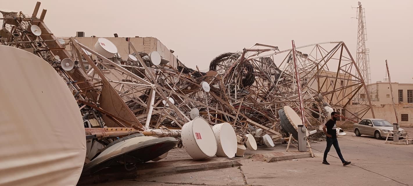 اعلنت الشركة القابضة للاتصالات أنه بدء العمل على إعادة خدمات الاتصالات بحلول بديلة مؤقتة، عقب انهيار برج الاتصالات الرئيسي في مدينة الزاوية جراء العاصفة الرملية التي شهدتها المنطقة الغربية.