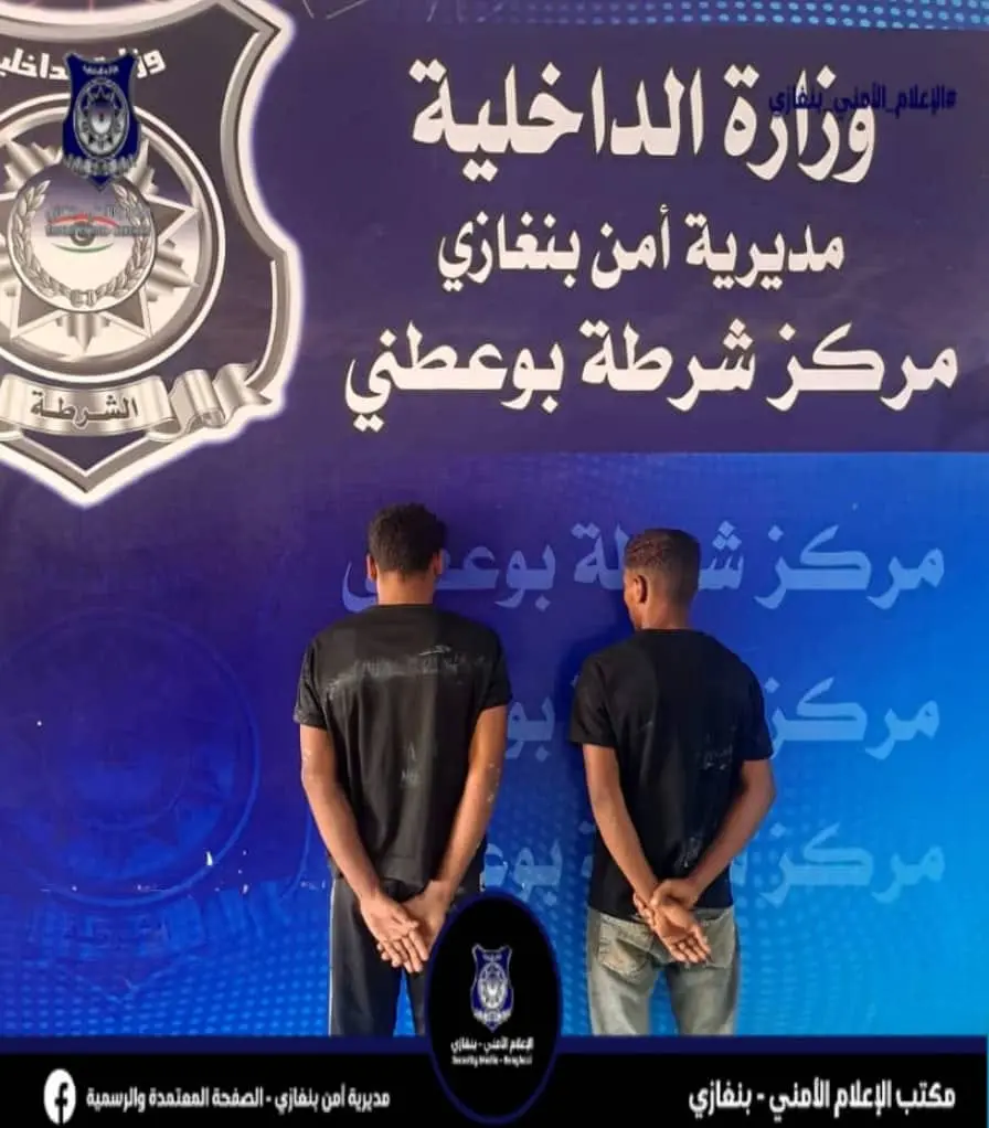 أعلنت مديرية أمن بنغازي، أن “تحريات مركز شرطة بوعطني، ألقت القبض على شخصين من الجنسية المصرية قاما بالإعتداء على مصري الجنسية وطعنه عدة طعنات بواسطة سكين لوجود مشكلة قديمة بينهم بدولة مصر”، كما أعلنت المديرية “عن “ضبط ثلاثة أشخاص من الجنسية المصرية أيضا، انتحلو صفة شركة لمكافحة الآفات والحشرات يمتلكها مواطن”.