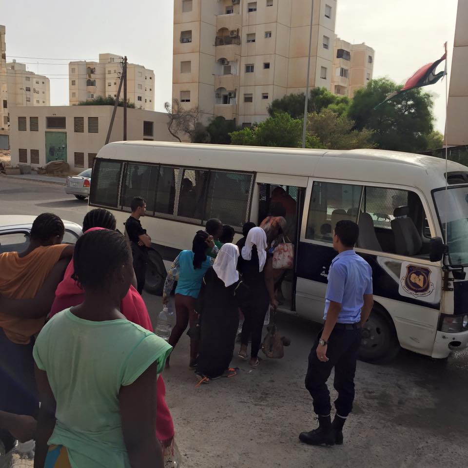 “مهاجرون غير قانونيين يتم نقلهم” .. (الصفحة الرسمية لجهاز الهجرة فرع جنزور على الفيسبوك)