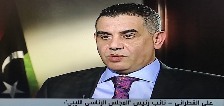 اعتبر نائب رئيس المجلس الرئاسي لحكومة الوفاق الوطني علي القطراني أن قرارات المجلس الرئاسي تزيد الانقسام السياسي، مشيرًا إلى أن قرار تكليف رئيس جهاز حرس المنشآت النفطية واستلام المنشآت والموانئ والحقول التابعة للمؤسسة الوطنية للنفط في حكم الباطل قانونًا.