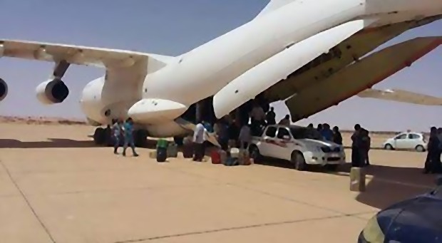 وقال “الاوجلي” إن الطائرة تحمل أيضا معدات خاصة بالمحطة الغازية للكهرباء.
