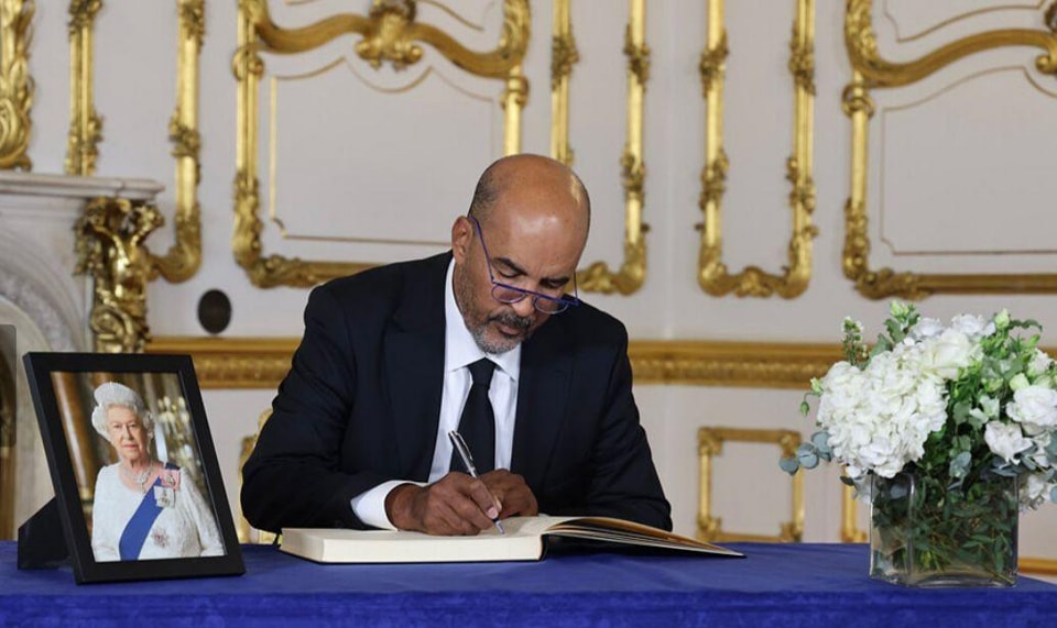 وكتب الكوني في سجل كبار الزوار: “صبغ رحيل جلالة الملكة اليزابيت الثانية كامل الأرض بحزن جلل، وقد كانت الرمز لثبات قيم إنسانية وسياسية أسست لنموذج حكم فريد”.