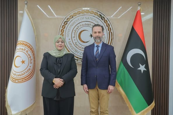 استقبلت وزيرة الشؤون الاجتماعية في حكومة الوحدة الوطنية “وفاء أبو بكر الكيلاني”، الأحد، سفير جمهورية تركيا لدى ليبيا غوفين بيجيتش، وذلك في إطار تعزيز الشراكة بين البلدين.