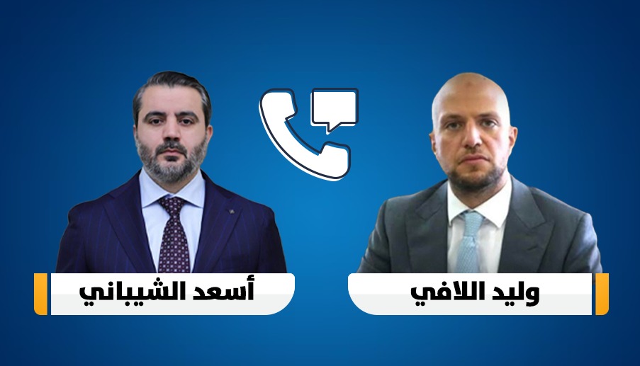 تلقى وزير الدولة للاتصال والشؤون السياسية بحكومة الوحدة الوطنية، وليد اللافي، اتصالاً هاتفياً من وزير الخارجية السوري، أسعد الشيباني، تم خلاله بحث سبل تعزيز العلاقات الثنائية بين ليبيا وسوريا وتطوير التعاون المشترك في مختلف المجالات.