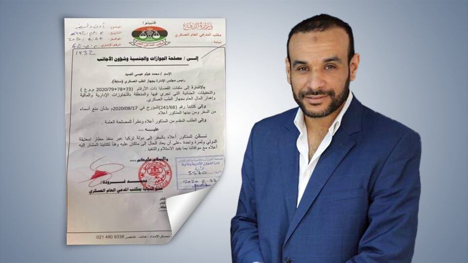 وأذن المدعي العام العسكري لمحمد هيثم بالسفر إلى دولة تركيا عبر منفذ مطار معيتيقة الدولي ولمرة واحدة، على أن يعاد الحال إلى ما كان عليه.