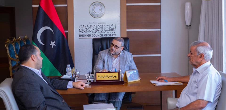 التقى رئيس المجلس الأعلى للدولة خالد المشري، الاثنين، رفقة رئيس لجنة متابعة الاتفاق السياسي بالمجلس محمود الهوش، رئيس مجلس إدارة الهيئة العامة لصندوق التضامن الاجتماعي مصطفى فتحي الجعيبي.