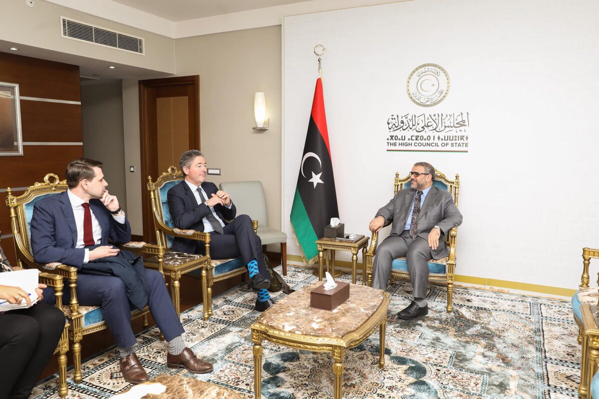 التقى رئيس المجلس الأعلى للدولة خالد المشري، اليوم الثلاثاء، بمقر المجلس في العاصمة طرابلس، سفيرَ دولة ألمانيا لدى ليبيا ميخائيل أونماخت.