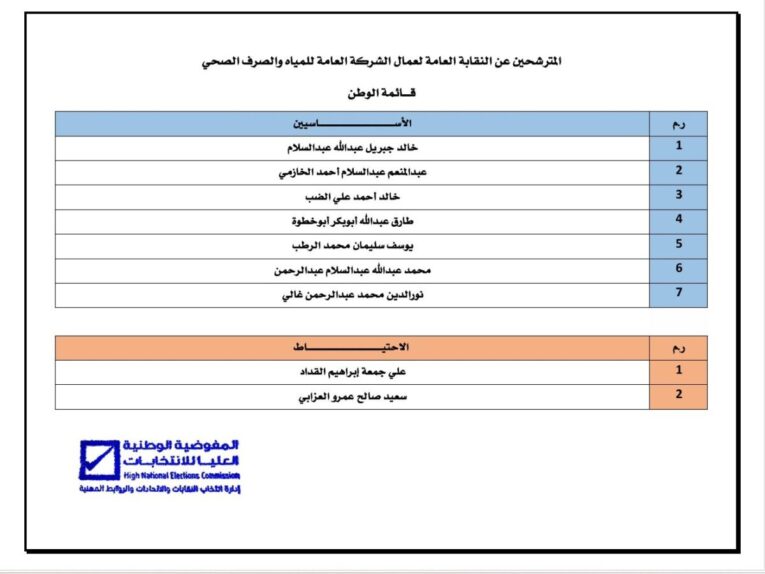 وفي سياق متصل، أعلنت إدارة الانتخابات عن نشر القائمة الأولية لمترشحي نقابة عمال الشركة العامة للمياه والصرف الصحي، مع تحديد يومين، الاثنين والثلاثاء 6 و7 أبريل 2026، لتقديم الطعون أو الاعتراضات على القائمة قبل اعتمادها رسمياً.
