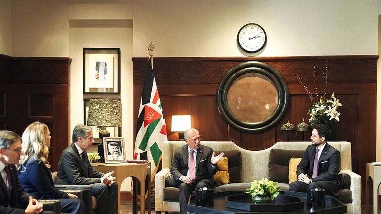 ونبه الملك الأردني خلال لقاءه مع وزير الخارجية الأمريكي أنتوني بلينكن، في عمان، إلى أن “الآثار الكارثية للحرب الدائرة في غزة، قد تتسع لتشمل مناطق في الضفة الغربية والقدس، والمنطقة بأسرها”.