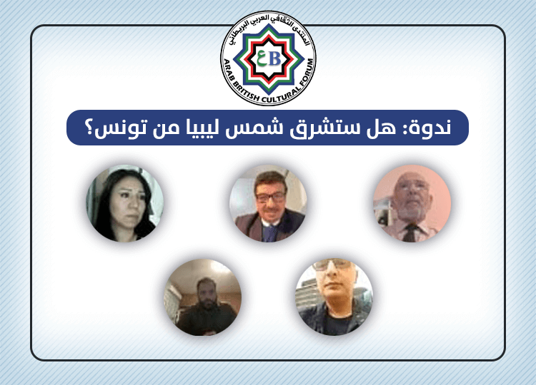 نظم المنتدى الثقافي العربي البريطاني ندوة عبر دوائر الفيديو، شارك فيها العديد من أساتذة الجامعات من ليبيا وسوريا وتونس والسودان وبعض من الدول الأخرى حول المشهد السياسي الليبي تحت عنوان “هل ستشرق شمس ليبيا من تونس؟”.