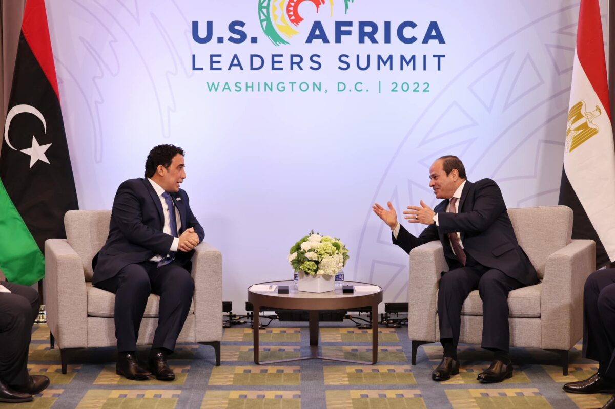 جاء ذلك على هامش فعاليات القمة الأمريكية الإفريقية بالعاصمة واشنطن، في حين شدد السيسي على موقف مصر الثابت من دعم جهود المجلس الرئاسي برئاسة محمد المنفي.