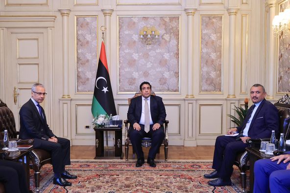 وذكر المكتب الإعلامي لرئيس المجلس الرئاسي أن اللقاء تمحور حول آخر المستجدات السياسية والاقتصادية والأمنية في ليبيا.