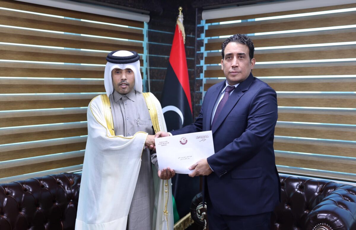 استقبل رئيس المجلس الرئاسي محمد المنفي، اليوم الأحد، بمقر المجلس في طرابلس، سفير دولة قطر لدى ليبيا خالد الدوسري، الذي قام بتسليمه رسالة خطية من تميم بن حمد آل ثاني أمير دولة قطر.