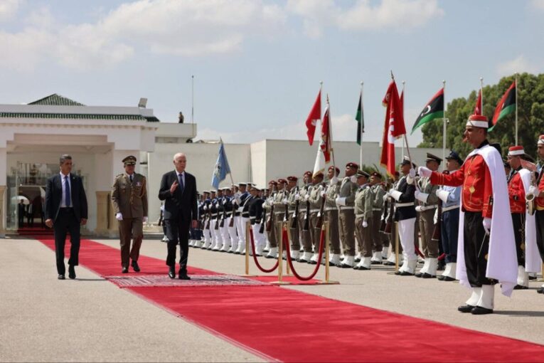 وشهد المطار مراسم استقبال رسمية، تضمن عزف النشيد الوطني لكل من ليبيا وتونس، قبل أن يتوجه الرئيسان إلى قصر قرطاج لإجراء مباحثات ثنائية موسعة ومغلقة.