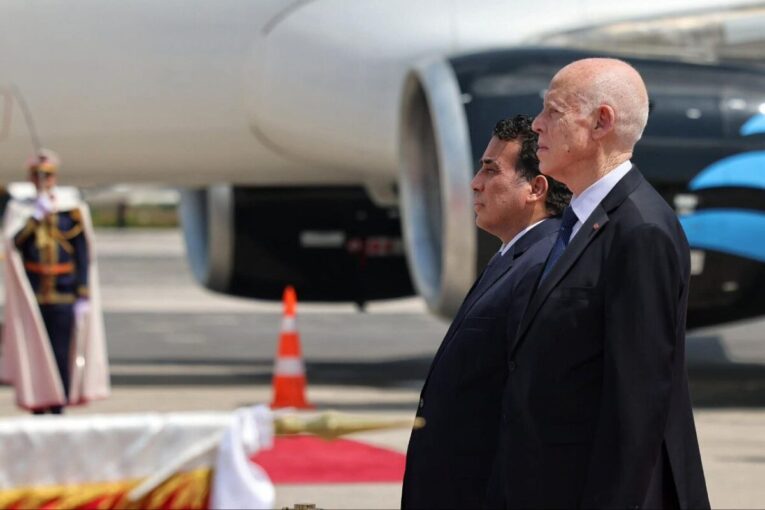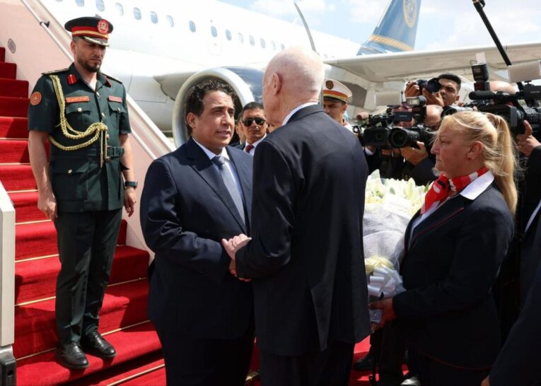 وصل رئيس المجلس الرئاسي، محمد المنفي، إلى الجمهورية التونسية، حيث كان في استقباله بمطار تونس قرطاج، رئيس الجمهورية، قيس سعيد.