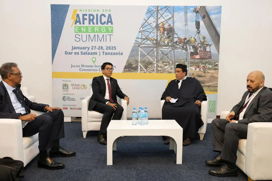 التقى رئيس المجلس الرئاسي، محمد المنفي، عصر اليوم الثلاثاء بمدينة دار السلام بجمهورية تنزانيا المتحدة، رئيس جمهورية مدغشقر، “أندري راجولينا”.