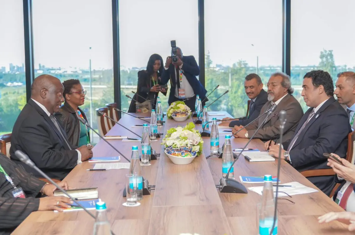 التقى رئيس المجلس الرئاسي محمد المنفي، رئيس جمهورية جنوب إفريقيا سيريل رامافوزا، على هامش القمة الروسية الإفريقية التي عُقِدت بمدينة سان بطرسبرغ الروسية.