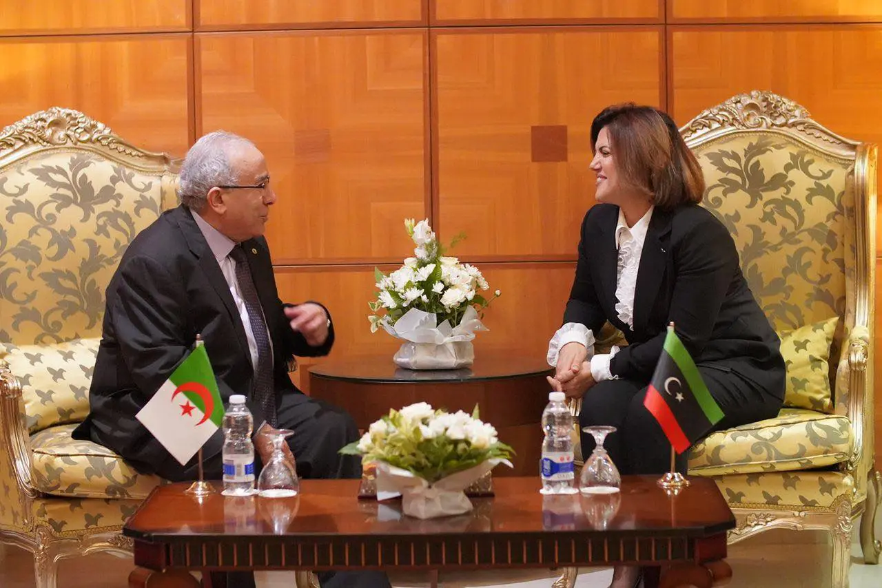 ورحبت الوزيرة في مستهل اللقاء، بوزير الخارجية الجزائري، معربة عن تقديرها لوقوف ومساندة الجزائر الدائمة للشعب الليبي .