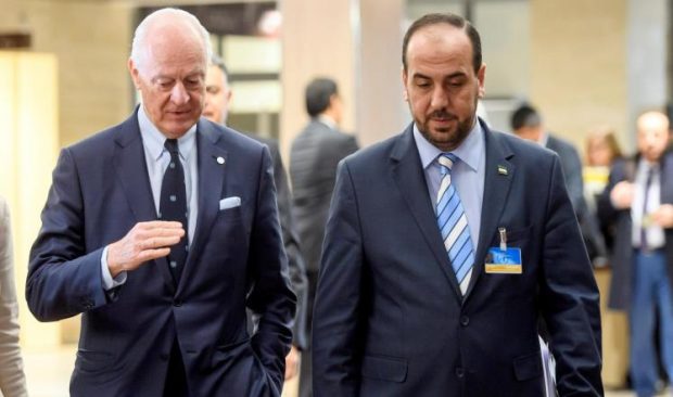 وقال دي ميستورا أمس عقب اجتماع مع وفد النظام إن هجوم جماعات مسلحة على حمص السبت كان محاولة متعمدة لتخريب مفاوضات جنيف، وحذر من أن انتهاكات وقف إطلاق النار قد تقضي على هذه الفرصة “الضئيلة” التي تمثلها المفاوضات.
