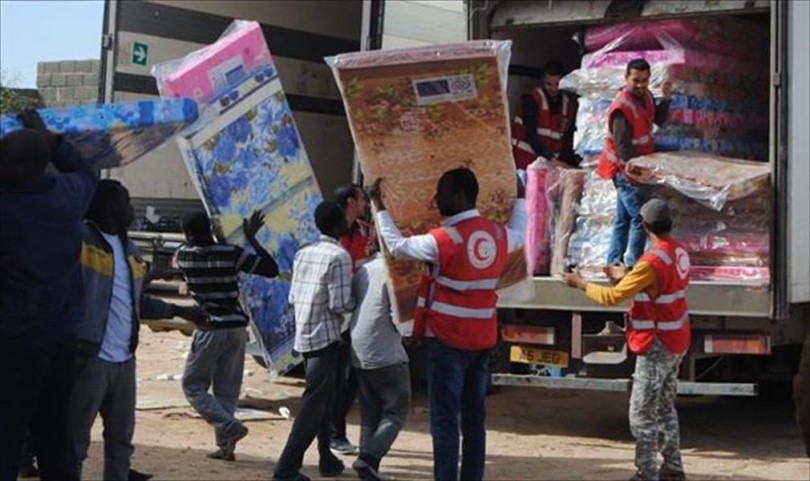 وقال المتحدث باسم الهلال الأحمر أوباري عبد السلام مسعود، إن الهلال استلم إغاثة تتكون من مواد غذائية، مضيفا أن الهلال سيبدأ بتوزيعها بعد اكتمال وصلها إلى أوباري من مدينة سبها.